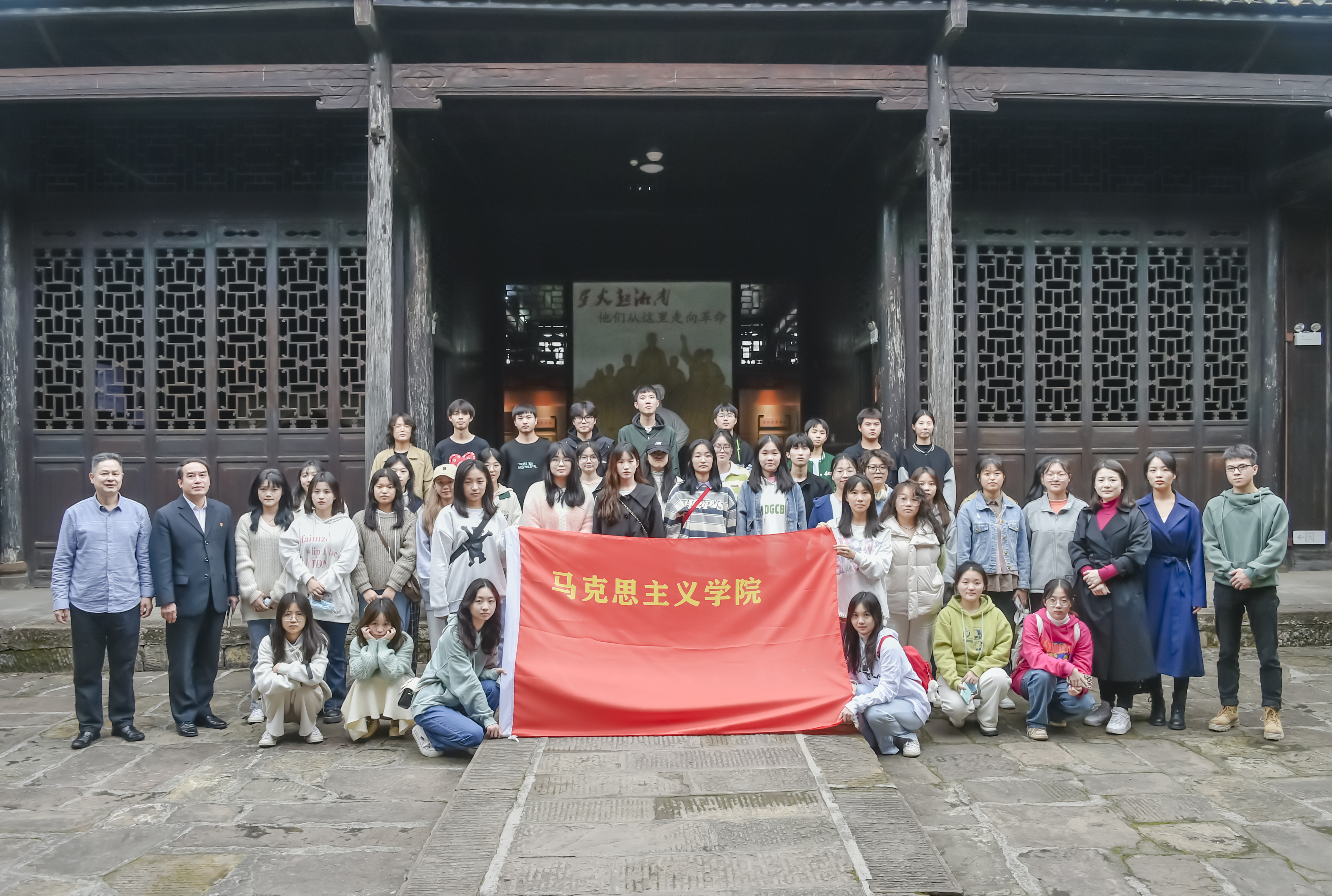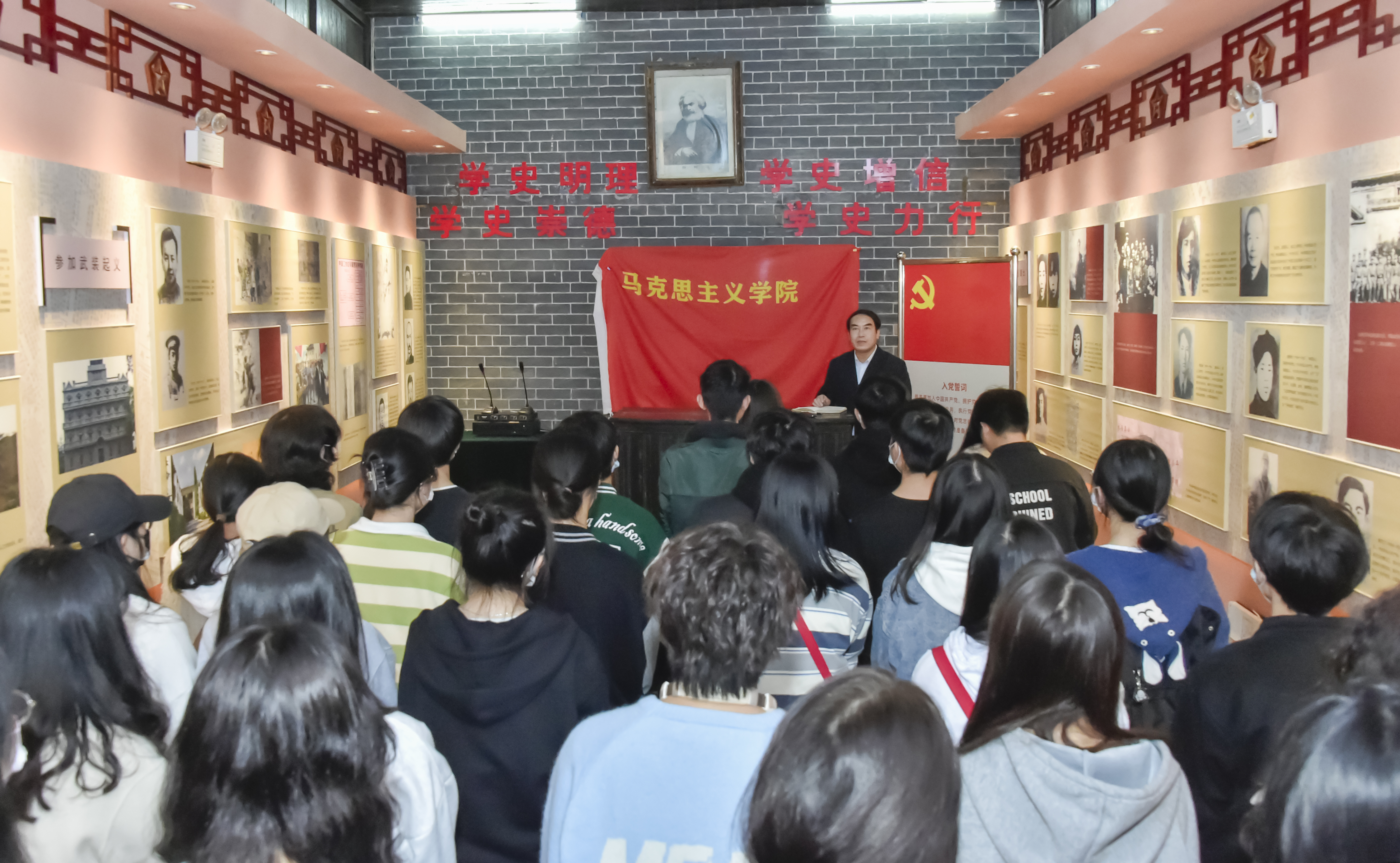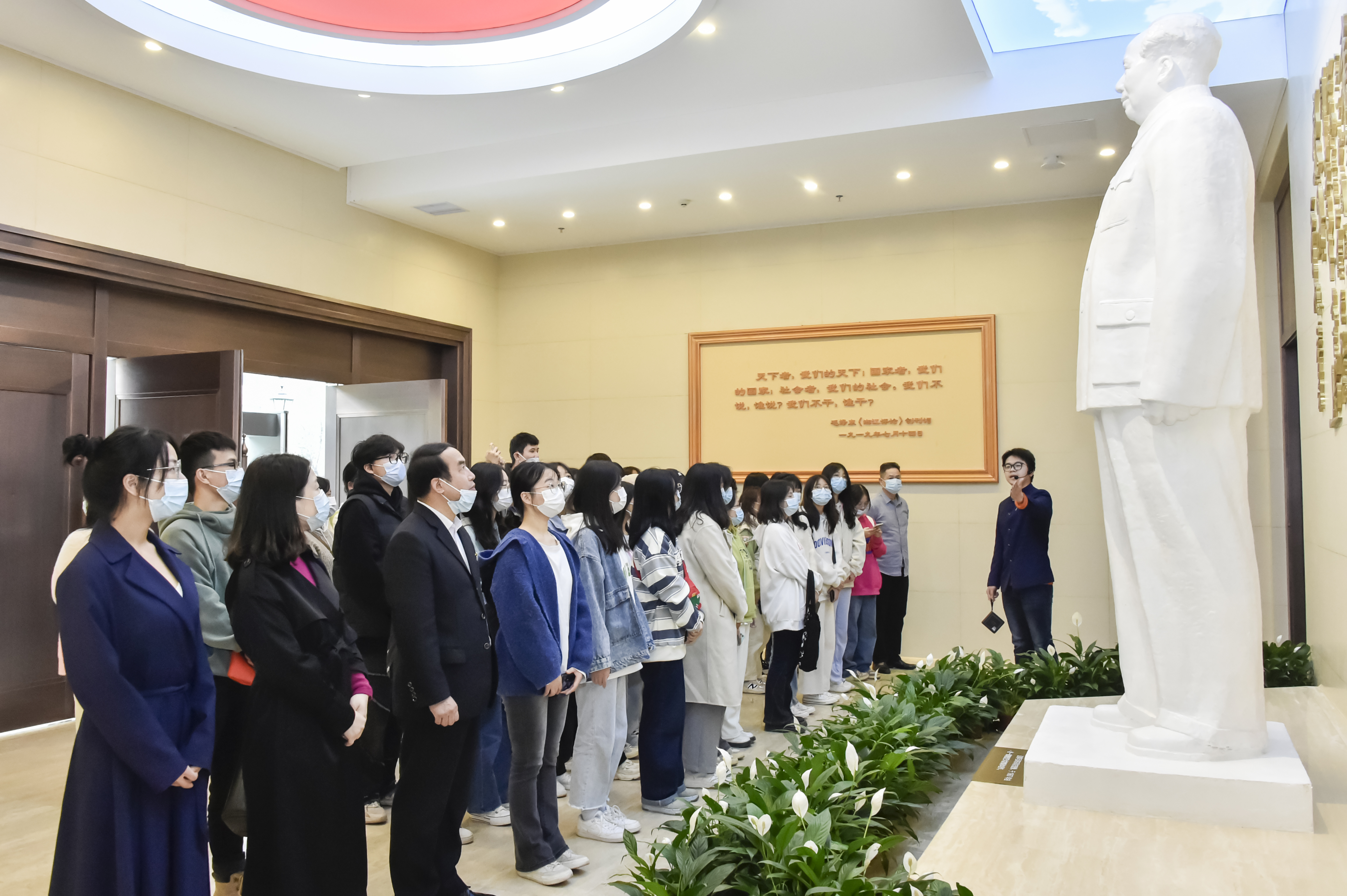 本网讯(通讯员 赵红深  摄影  李建华1125日下午,马克思主义学院副院长沈飚和2名教师一行3人组织人文与艺术学院2021级学生代表41人赴湘南学联爱国主义教育基地开展《毛泽东思想和中国特色社会主义理论体系概论》课程的实践教学,追寻伟人足迹,感受伟人精神,加强爱国主义教育。