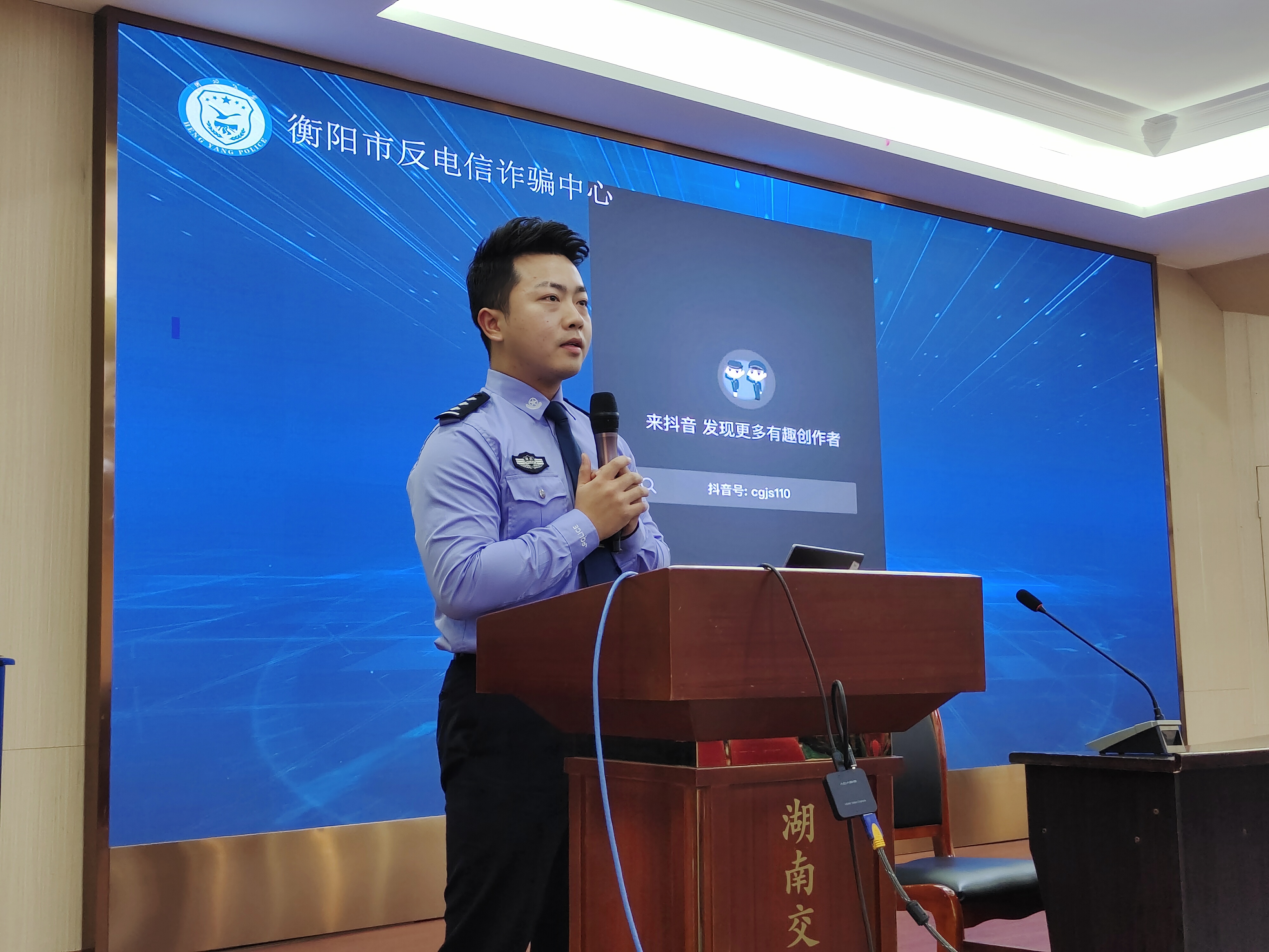 本网讯(通讯员李水华 摄影刘心雨贯彻落实中央、省、市关于禁毒、反电诈工作的重要指示和有关文件精神,切实提广大师生识诈防诈能力和识毒拒毒意识,有效预防和遏制涉毒案件电信网络诈骗发生,1012日下午,湖南交通工程学院该校航母楼101会议开展禁毒反电诈宣讲活动,并同步进行网络直播。讲座特邀衡阳县公安局禁毒大队教导员刘芳、衡阳市公安局反电信诈骗中心三级警长邬钰担任主讲,学校副校长余孟辉、学工处处长刘公保、保卫处处长张高富,各二级学院党总支书记、副书记及近400学生参加。讲座由张高富主持。