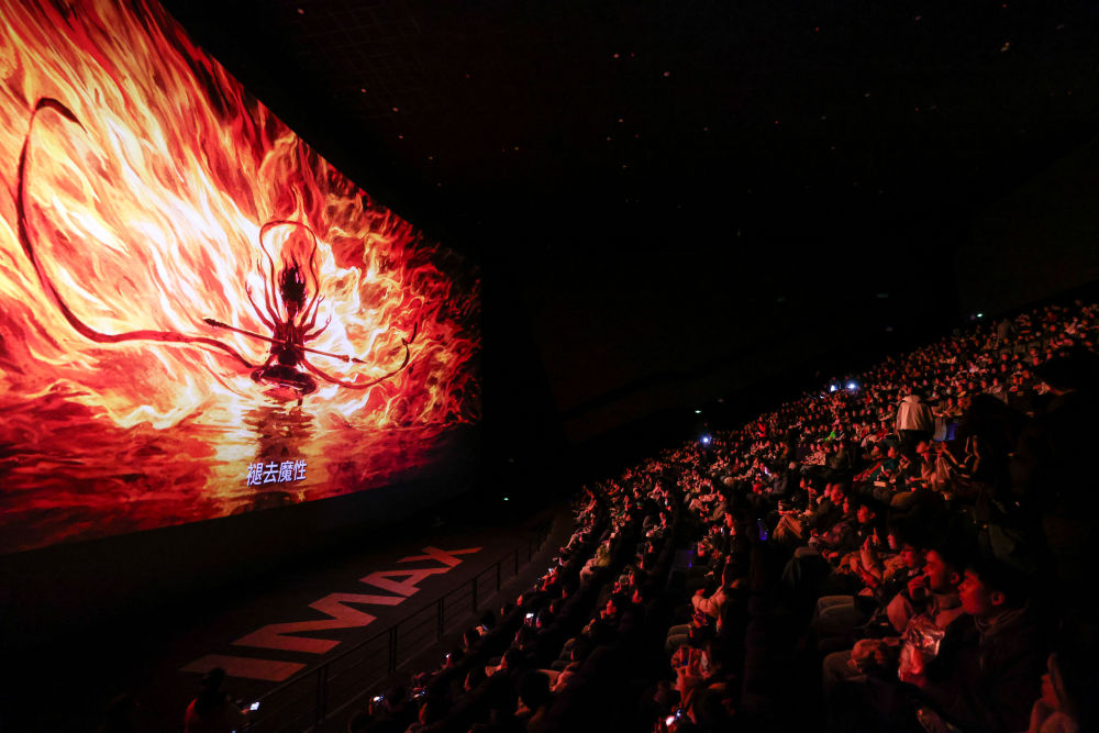 2025年2月25日,观众在贵州省贵阳越界影城imax影厅内观看电影《哪吒2》。