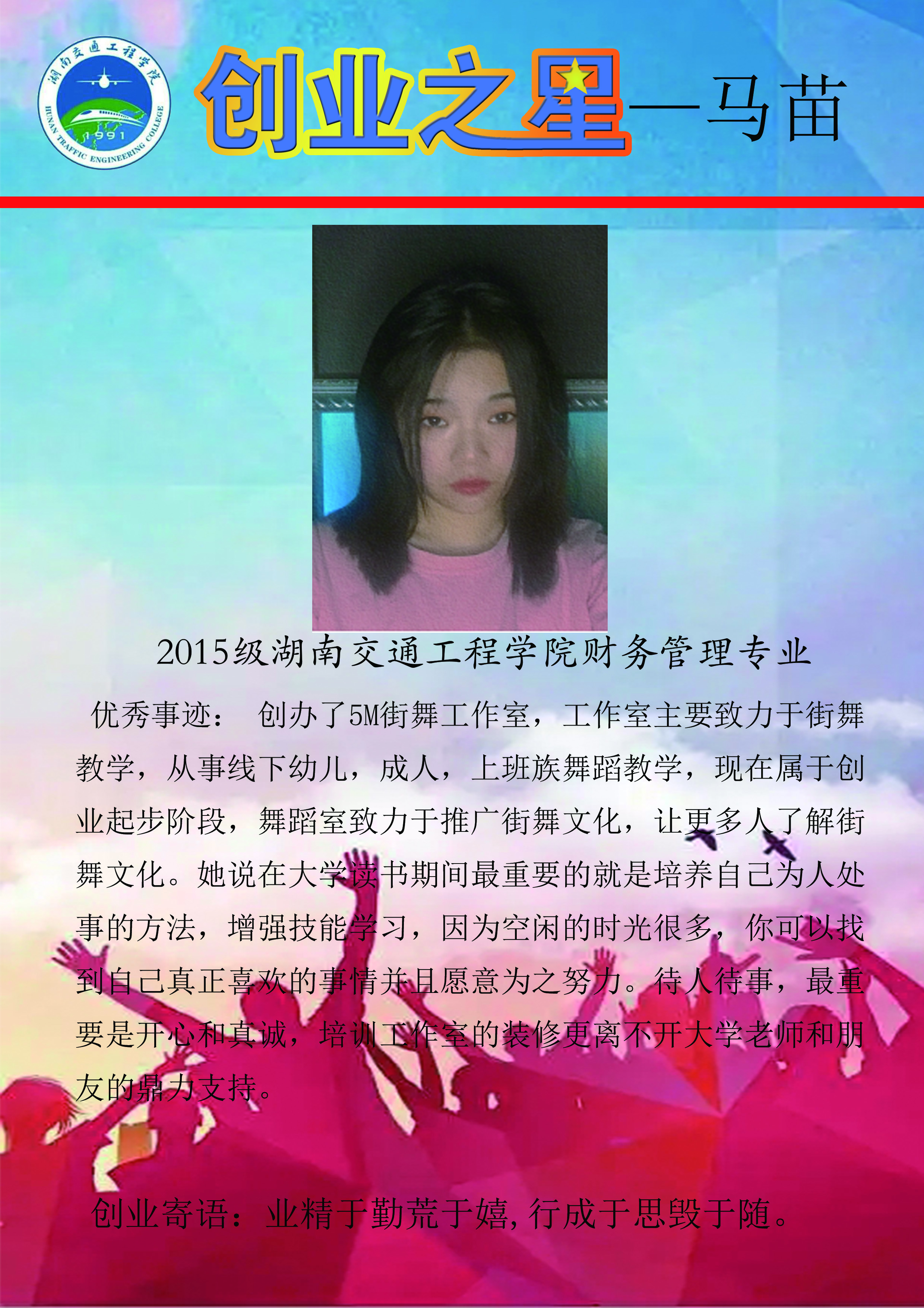 湖南交通工程学院大学生创业之星——马苗-凯发官网首页下载